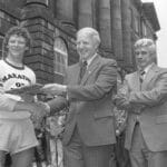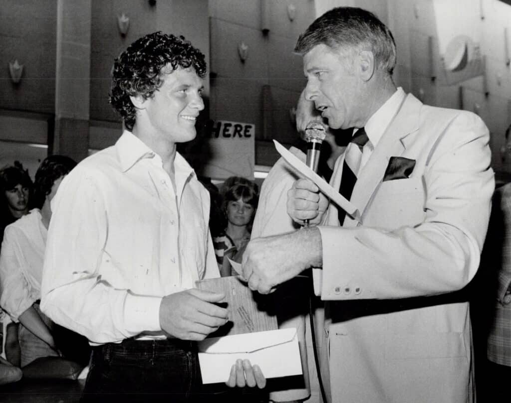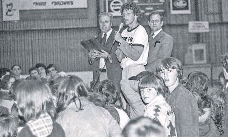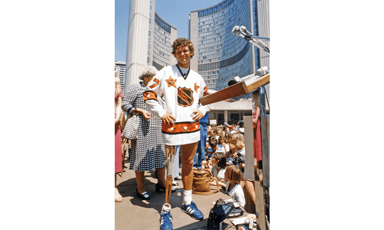Terry meets his hockey idol Darryl Sittler who gave Terry his 1980 NHL all-star team sweater. Darryl said, “I’ve been around athletes a long time and I’ve never seen any with his courage and stamina.” One on-looker commented, “He makes you believe in the human race again.”
