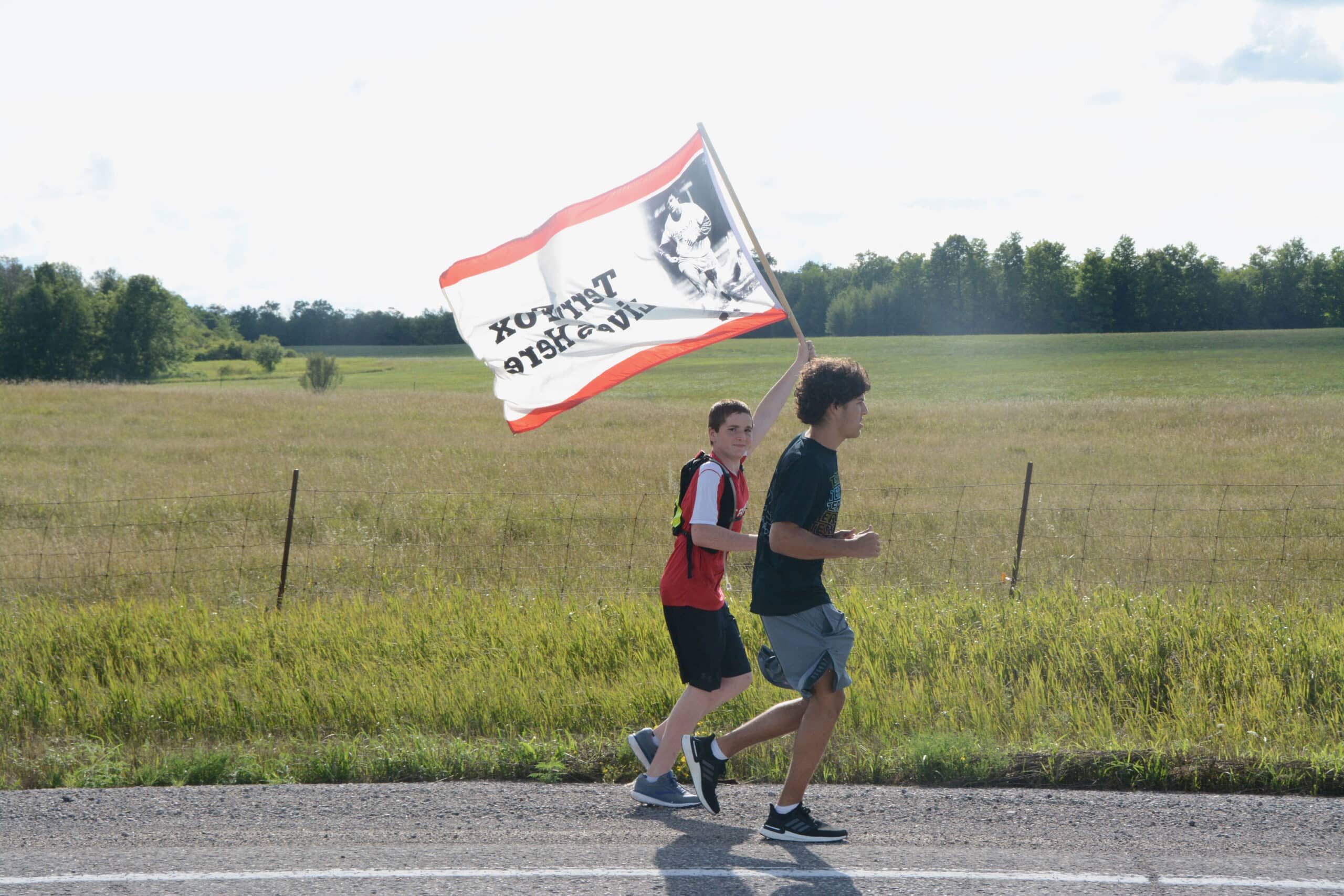 “Today CBC was there to film as I walked out the door at 4:30am. They followed me for the first 10 miles then left me for the last 2. I ran very, very well. Felt really good, no wind and not hot or cold. I took a break during which I couldn’t sleep, too hot then tore through 14 miles. I made it through Cumberland County. I had tremendous support from the OPP. It was easy for me because I didn’t have to worry about traffic.”