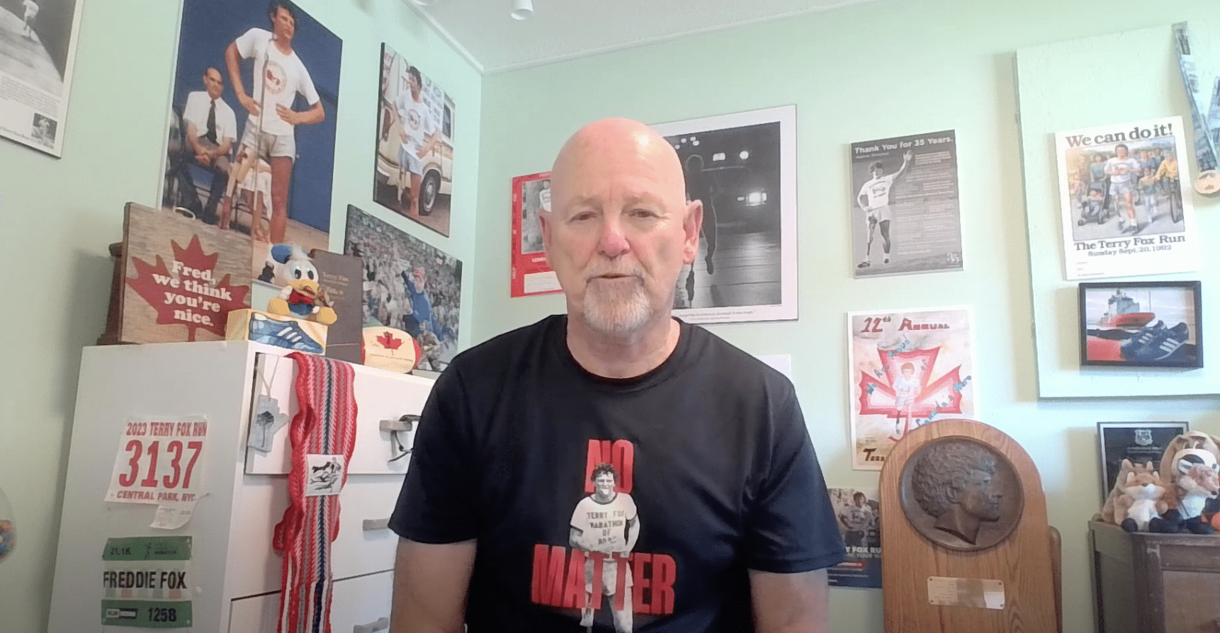 Terry told several thousand people that his fame was not meant to be of the Run, he wasn’t interested in wealth or notoriety, and that he was just a guy running across the country to collect money for cancer research. He also said that the Marathon had to continue even without him.