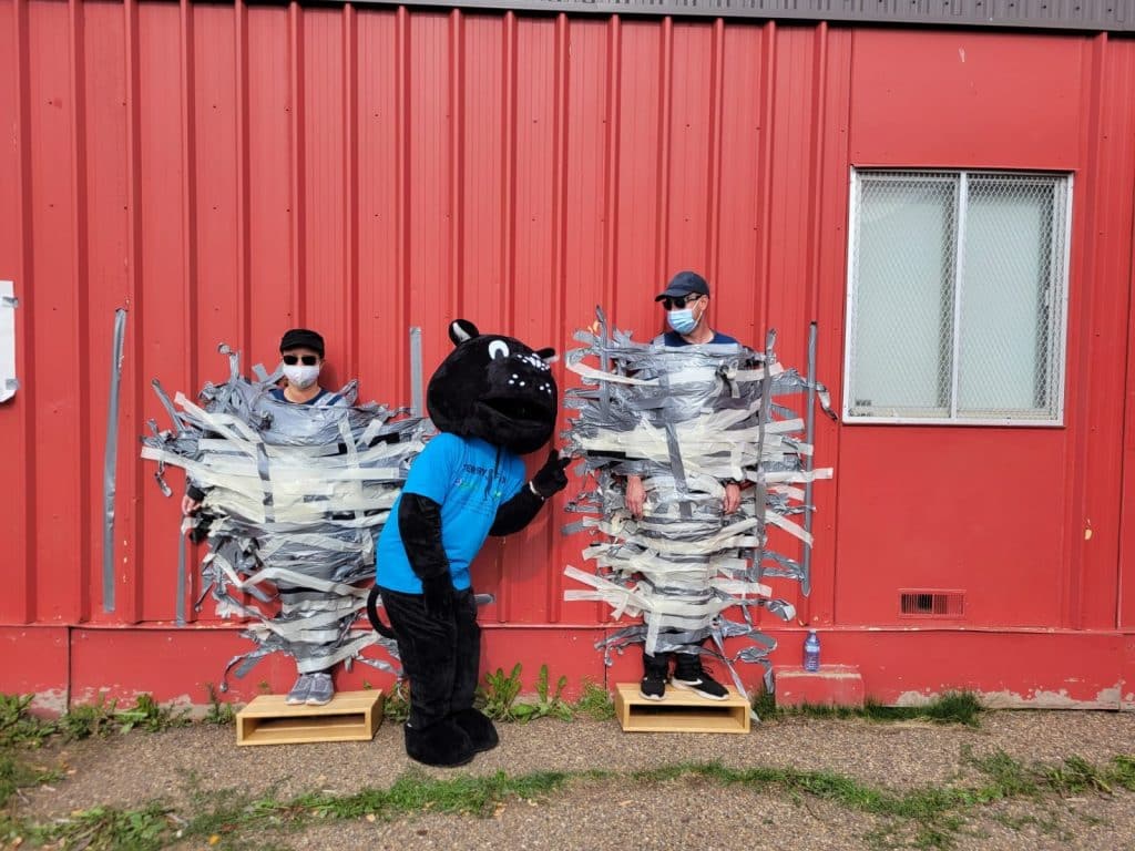 L’école Opasquia a relevé son défi qui consistait à récolter 1 $ pour chaque kilomètre parcouru à la course par Terry. Résultat, la directrice s’est fait engluer!