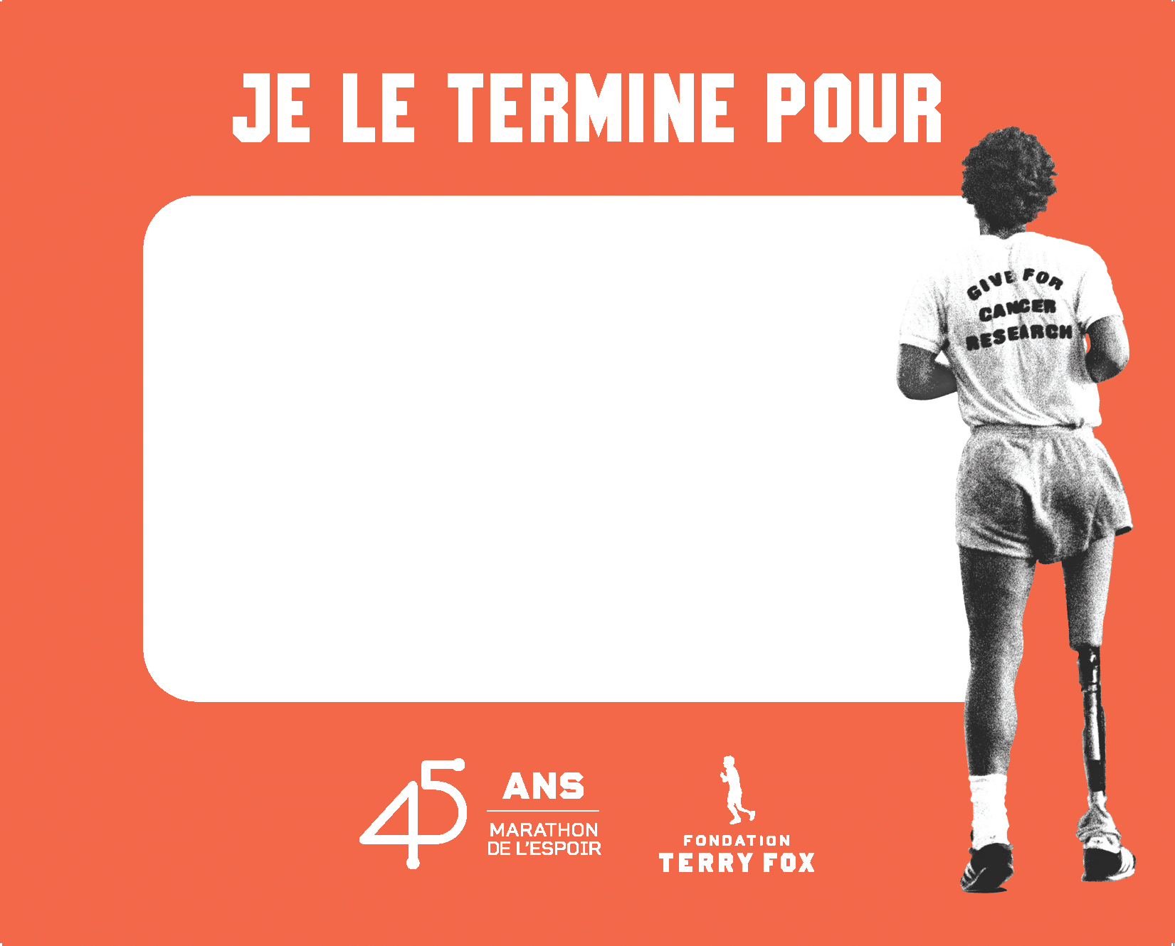 Si votre école participe à la Course Terry Fox des écoles pour la première fois ou si elle reprend sa participation après une interruption d’un an ou plus, nous vous souhaitons la bienvenue! Nous sommes ravis que vous vous joigniez aux quelque 10 000 écoles participantes d’un bout à l’autre du pays. Cette année marque le 45e anniversaire du Marathon de l’espoir de Terry. Terry serait tellement fier de voir près de quatre millions d’élèves suivre son exemple en se fixant des objectifs et en repoussant leurs limites pour collecter des fonds pour la recherche sur le cancer.